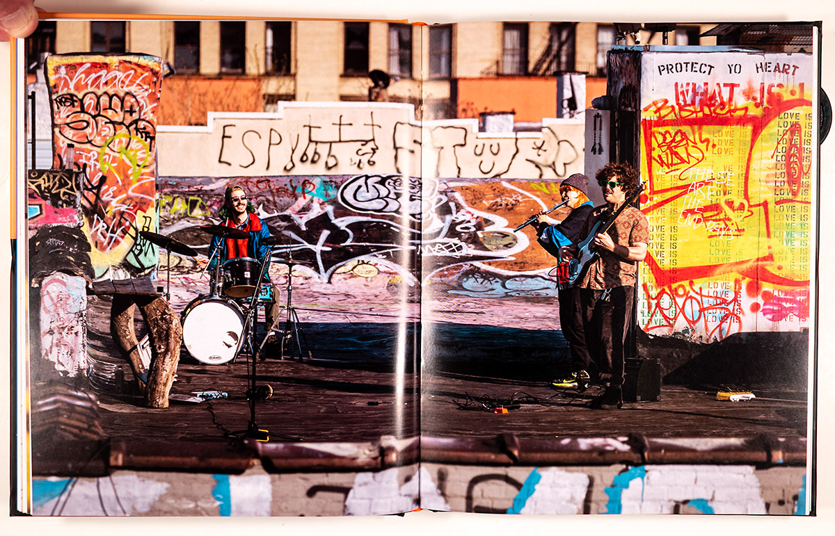 In his epilogue, from March 2021, Katz writes, “In trauma, people come together and form lasting bonds.” Katz’s book is filled with evidences of these bonds – people making music, having a drink together, writing in a journal, even cleaning – the more unremarkable the activity, the more beautiful and moving. I think in particular of the couple depicted on pages 72 – 75 (I think it’s the same couple) interacting in wonderfully average ways near a piece of rooftop graffiti reading *cults!.