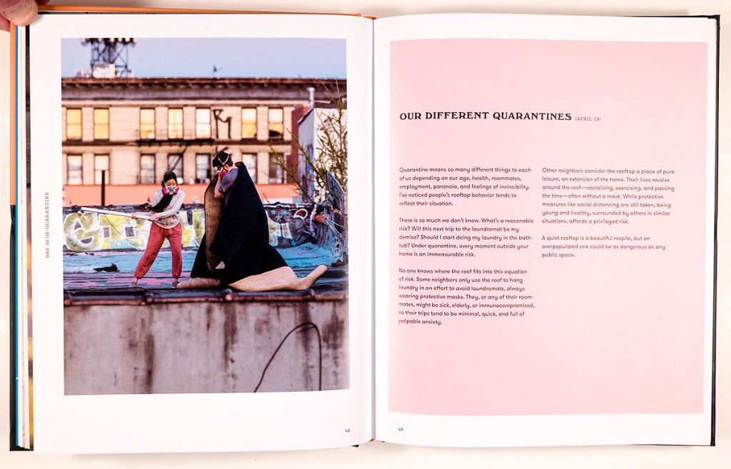 I begin with this extended personal narrative simply to give a context to my responses to the books being reviewed here, On the Roof: New York in Quarantine by Josh Katz and Williamsburg Bkn in Time of Plague by Brian Rose. The coincidence of both books documenting the effects of the same event in the same place from such different perspectives harkened back to my students’ efforts in spring of 2020.