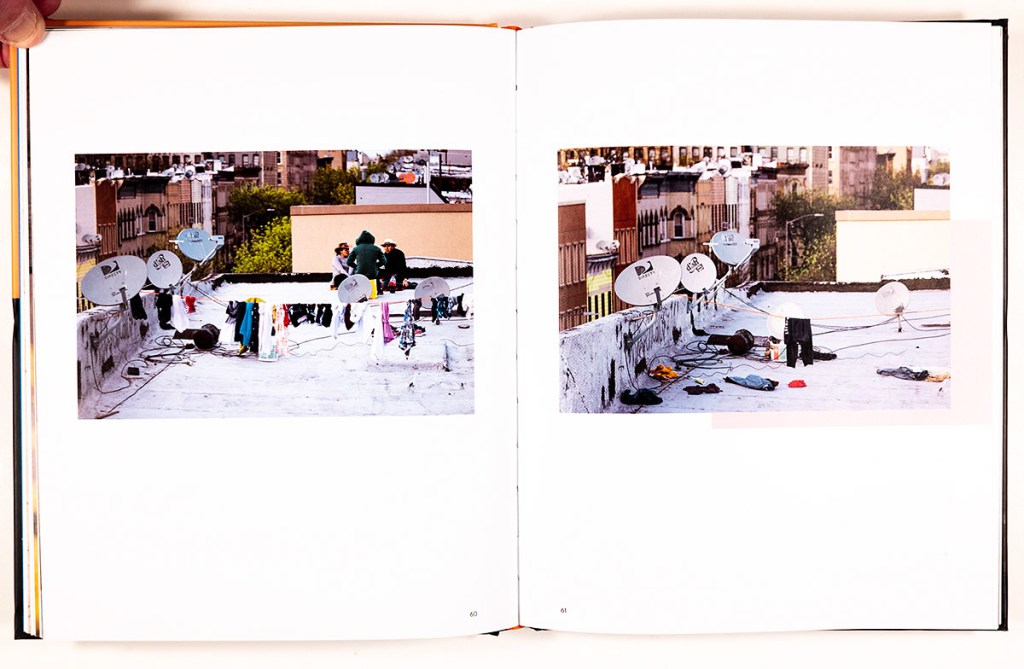 Before considering the narratives of the two books, a few words about the books as physical objects. The design and layout approaches taken by each hint at the different ways each photographer documents the effects of the quarantine – how each tells his story. Rose’s volume is softcover, 11”x 8” (98 pages) straightforwardly structured in a uniform layout of two horizontal images across each spread. The design of Katz’s book (by Eddie Ymeri), on the other hand, is varied throughout. The book is hardcover, 8 ¼” x 10 ¼” (144 pages) and combines double-page bleeds, single-page bleeds, images printed across the gutter, multiple images on a page and images set into images. Interspersed are texts, diary entries, really, written by Katz during the quarantine. These are often (but not always) printed on colored backing fields.