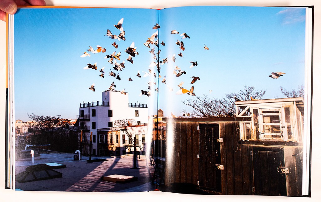 Visually the most striking photographs, I feel, are the photographs of Gil’s pigeons, particularly the double page spreads on pages 98-99 and 104-105. These images add a subtle metaphorical resonance to this diary-book in which we’re all seeking to fly away from the pandemic. But, as Katz so touchingly shows us, we can’t fly away, all we can do is fly to each other, those we share our rooftops with, in whatever form our rooftop takes.