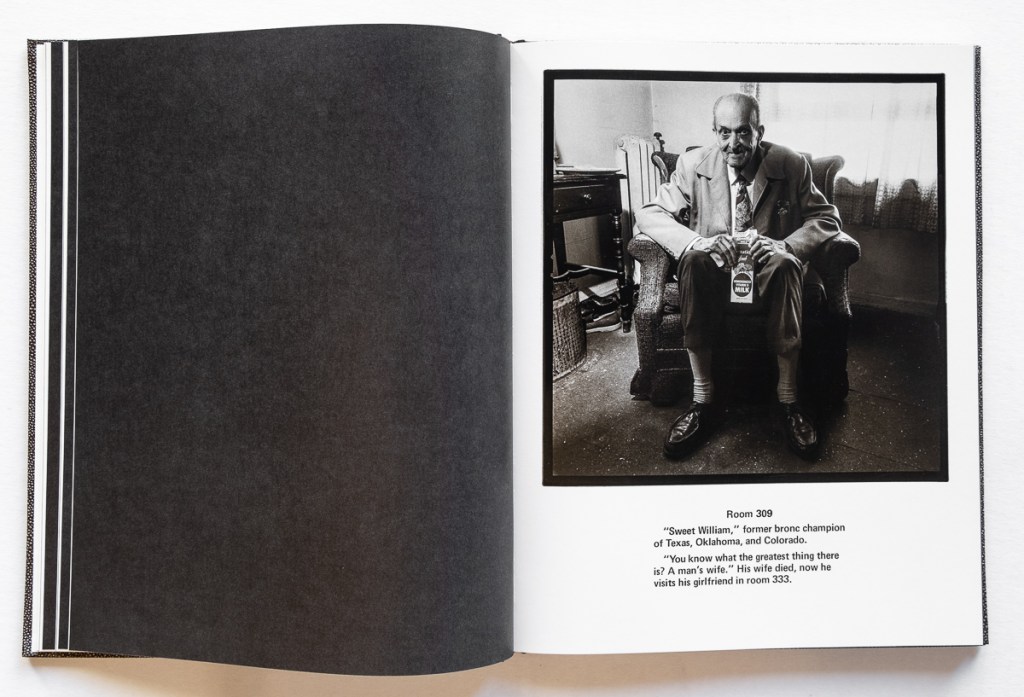 Engaging text by Wolin sums up the project and her career. She fondly describes her encounters with her fellow residents and the sense of community she experienced there. She also shows where this portfolio took her career — to editorial portraits for national publications of musicians, actors, photographers, and activists; a solo exhibition at the Smithsonian American History Museum, three monographs of photographic portraiture; an ongoing position as adjunct professor at ArtCenter College of Design, and more.