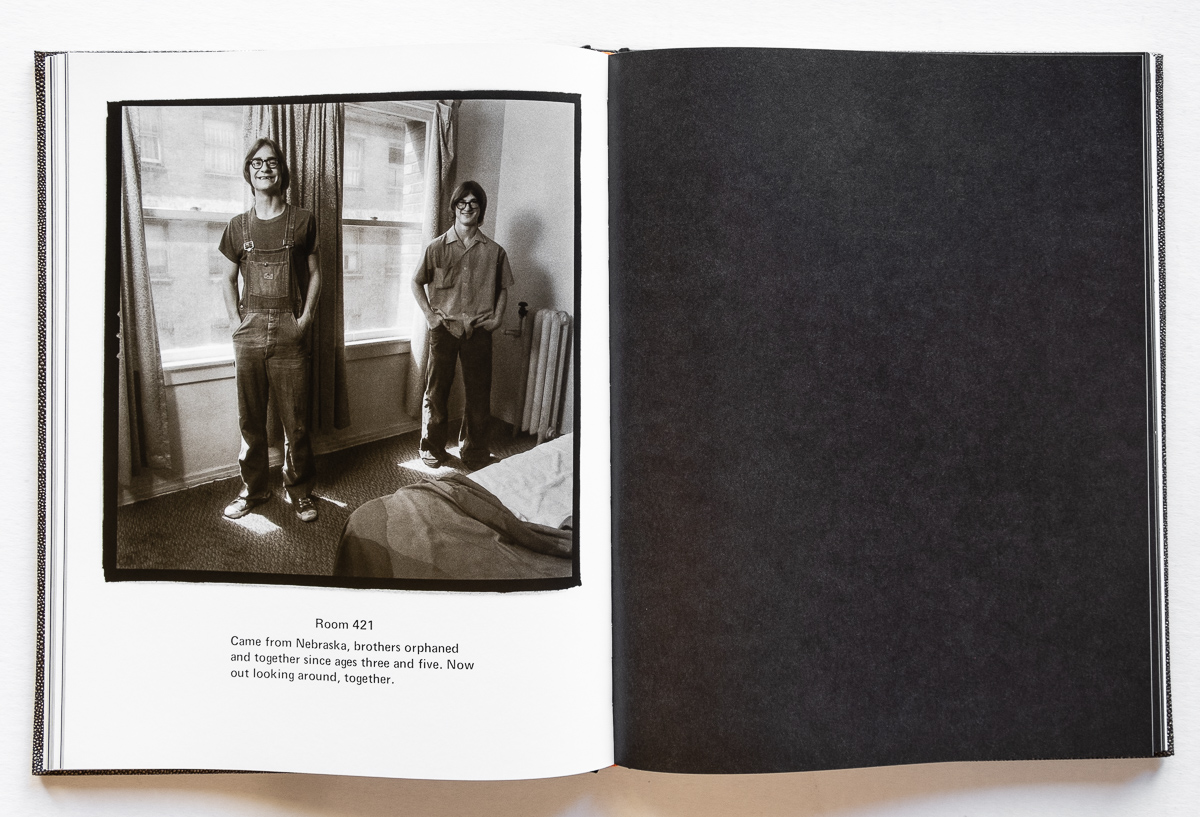 They included the former bronco-riding champion in Room 309. The former child actor in Room 412. The Taekwondo master in Room 415. The orphaned brothers from Nebraska in Room 421. And Walter, the plumber in Room 323, who was “well-liked and respected by everyone that gets to know him.” He left for work each morning in his overalls, but in the evenings could be seen in a fancy dress, high heels, make-up and a wig. In all, Guest Register presents 34 images of the hotel’s diverse clientele.
