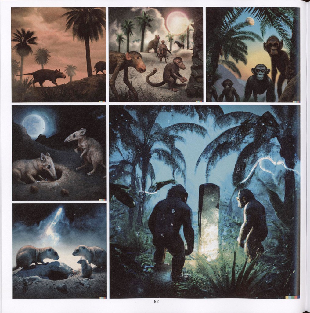 Jens Knappe, who has a computer-supported photo agency in Berlin as well as other experience in self-enhancing machine-support systems, was lucky to be one of the early experimental testers of DALL·E 2 earlier this year. Being a person who is well familiar with computer-supported endeavors, he immediately understood that this was “a milestone of epochal proportions,” best suited for visualizing a subject involving an extensive journey of the imagination, and dealing with ideas that mostly cannot be photographed in the real world. Thus he chose the creation and creativity of our universe, both past and future, as the subject to be imagined and imaged. The result is this wonderful photo book, the first of its kind to be based on such complex ideas serving as input to a machine-based compendium of human experience, with new images as the output which result in a very comprehensive visualization. His subtitle is A Creation Story in Collaboration with an Artificial Intelligence.