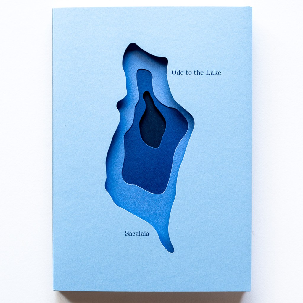 The journey to the bottom is enhanced by the topographical book design by Caleb Cain Marcus of Luminosity Lab. The dust cover and stiff cover behind it convey the shape and depth of the lake via three levels of die cuts mimicking its contours. Inside, the pages become thinner the deeper we dive into the lake.