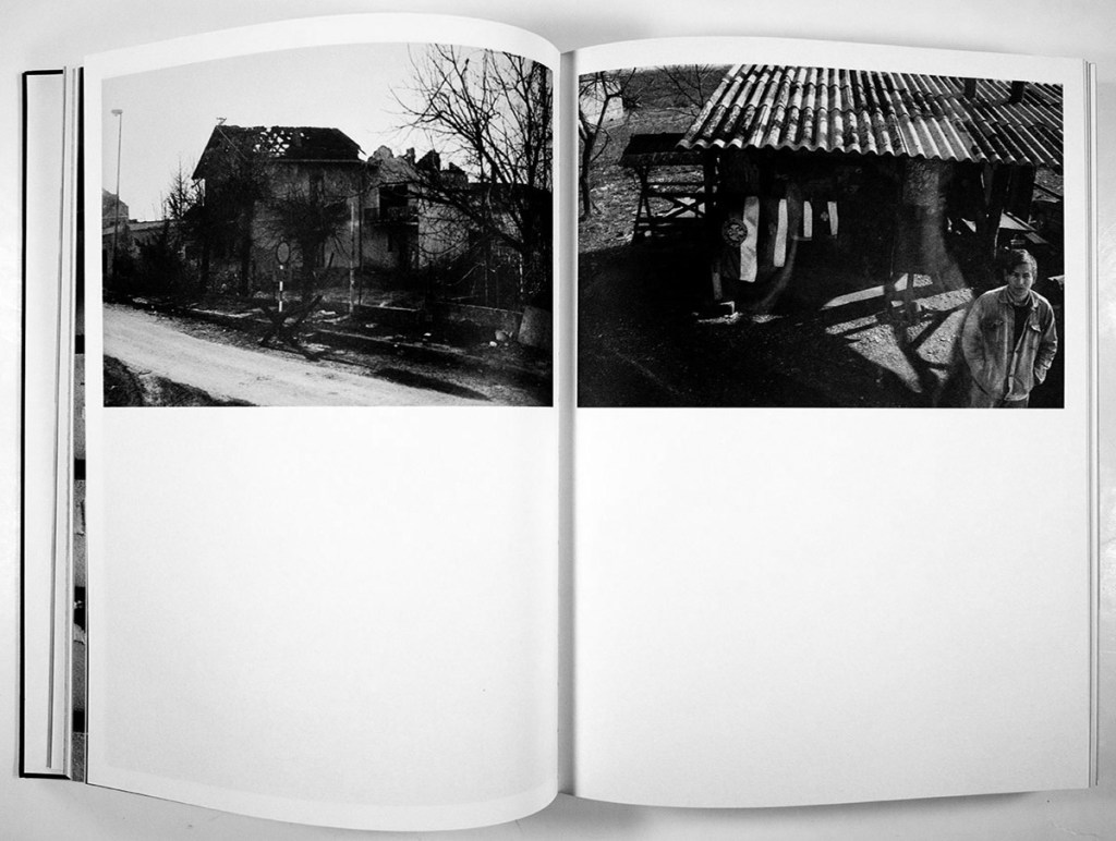 The difficulties in understanding one’s surroundings – where one is and the meaning of what one is seeing – are central to Kuzmanovic’s monograph. In a brief introductory statement (printed, along with two essays and an afterward in a separate softcover booklet), Kuzmanovic describes his photographs as those of one “who sets off on a dangerous journey, marking his path with signs in order to not lose his way.” With these sign-photographs, Kuzmanovic aims to navigate a personal journey through traumatic memory – through “fragments of my reality” – in order to more fully understand not so much the why, but the how of the collapse and devastating conflicts in what had been known as Yugoslavia (now Serbia, Bosnia and Croatia) and the consequences of these conflicts. He eloquently concludes his brief written introduction by describing “the attempt of a no longer young man to conclude this part of his history in the form of a personal reflection and to arrive at the present.”