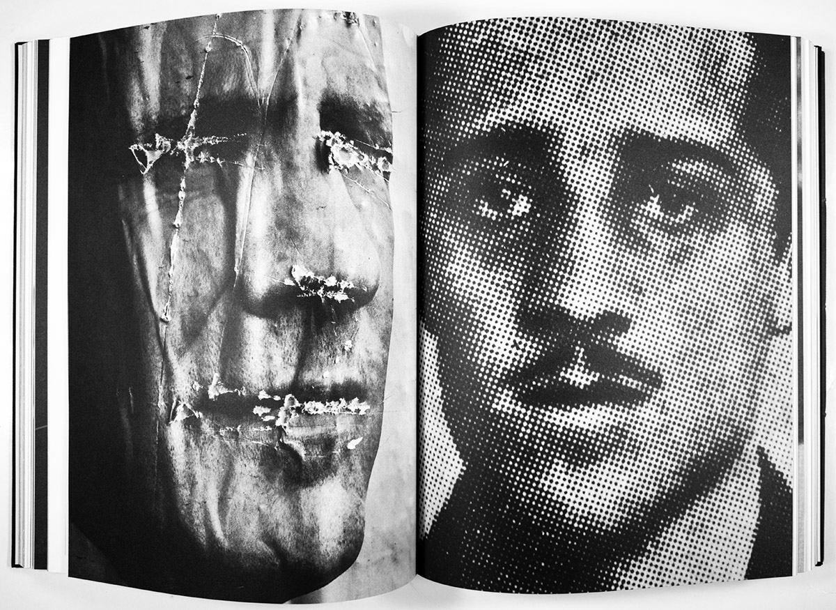 As a physical object, this book is substantial and formidable. As mentioned, it consists of two volumes. There is a hardback book of photographs, 9” x 12” and 1 1/2” thick. Its clothbound black covers feature lithographed portraits faintly peering out of a dark abyss. “Bound” to the back cover by a thick, black rubber band is a less weighty volume, a softcover, staple-bound booklet, again featuring on front and back covers faint portraits peering from the darkness. This volume contains Kuzmanovic’s introduction and the other written texts mentioned at the start of this review.
