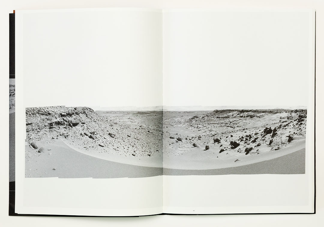 Would you like to take a photographic tour of the martian landscape? A tour taken via fine-art photographs that were once scientific images? Nicolai Howalt has curated such a tour using a set of robotic rover images taken from four National Aeronautics and Space Administration (NASA) missions to Mars. The rover “photographers” were Opportunity, Spirit, Curiosity, and Perseverance. The photographic direction came, of course, from the NASA rover science teams. The book’s author, seeing their potential as fine art objects, chose a subset of these images, projected them onto light-sensitive monochromatic paper, and sequenced them in this new book. The results are pristine panoramic martian landscapes with a bit of a historic feel.