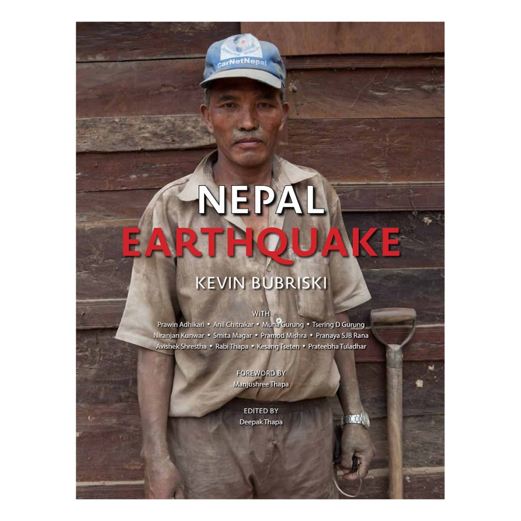 Essays: Foreword by Manjushree Thapa. Essays by Deepak Thapa, Prawin Adhikari, Anil Chitrakar, Muna Gurung, Tsering D Gurung, Niranjan Kunwar, Smita Magar, Pramod Mishra, Pranaya SJB Rana, Avishek Shrestha, Rabi Thapa, Kesang Tseten, and Prateebha Tuladhar. Preface and Photographer’s Journal by Kevin Bubriski.