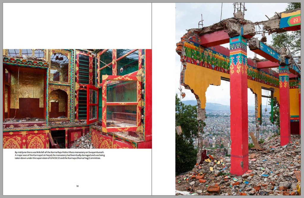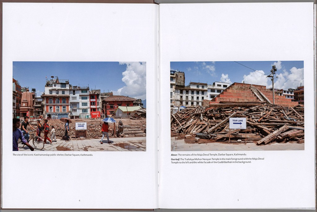 “Nepal Earthquake is not a book to rush through, but one to reflect over. How long can those struts hold up that temple? The book raises questions. How many weeks did that family live under tarpaulins? Look at that building leaning on another one. Did its inhabitants survive? Look at the workers standing on the rubble in open rubber sandals. What of their former lives was this community able to save?”