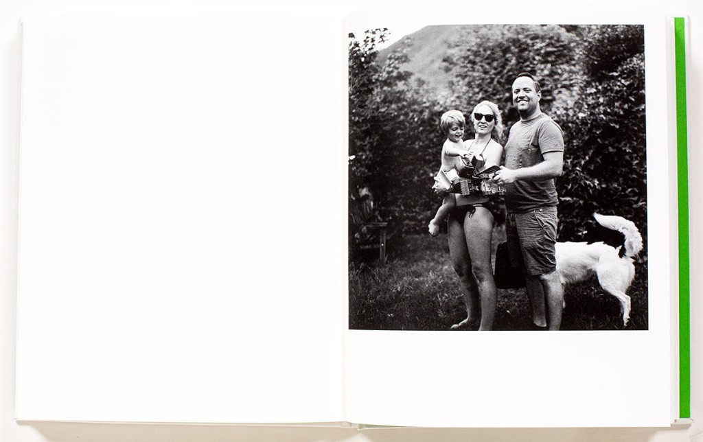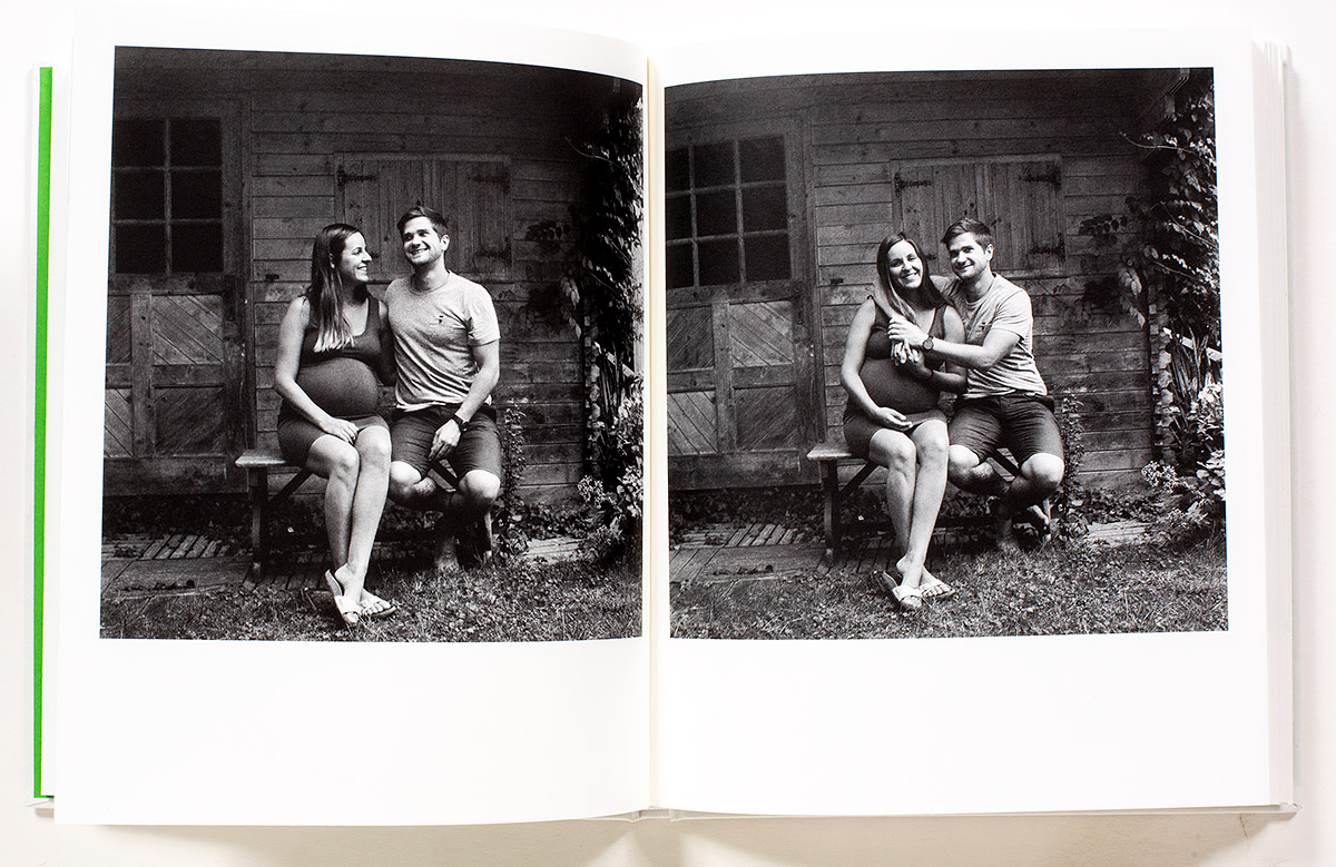 Although her book is a personal family album, it is also a collective portrait of ‘every family’ in capturing a group of individuals who are in the mid-stream of life’s events. Her location for this gathering is for the most part ambiguous, with only small traces that this might be occurring outside of the United States. It is an extended family being documented at a specific place and point in time; couples with their children, a couple who are expecting a child, parents, children, grandchildren and grandparents, both singular as well as groups, with a mix of formal poses and candid moments.
