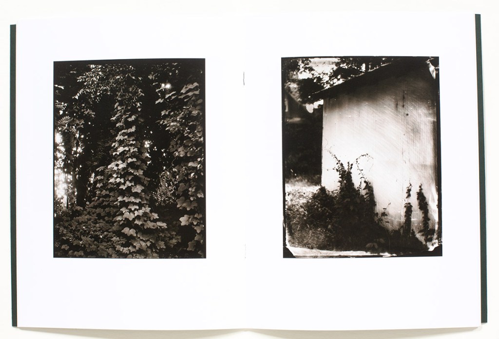 She mixes poetic black and white images of nature with those of the urban landscape, both have an underlying element of mystery. Her artistic tempo is slowed by the attributes of her photographic process. This monograph also appears to be a study of looking carefully at the ordinary and how light can play an important part in her resulting artwork.