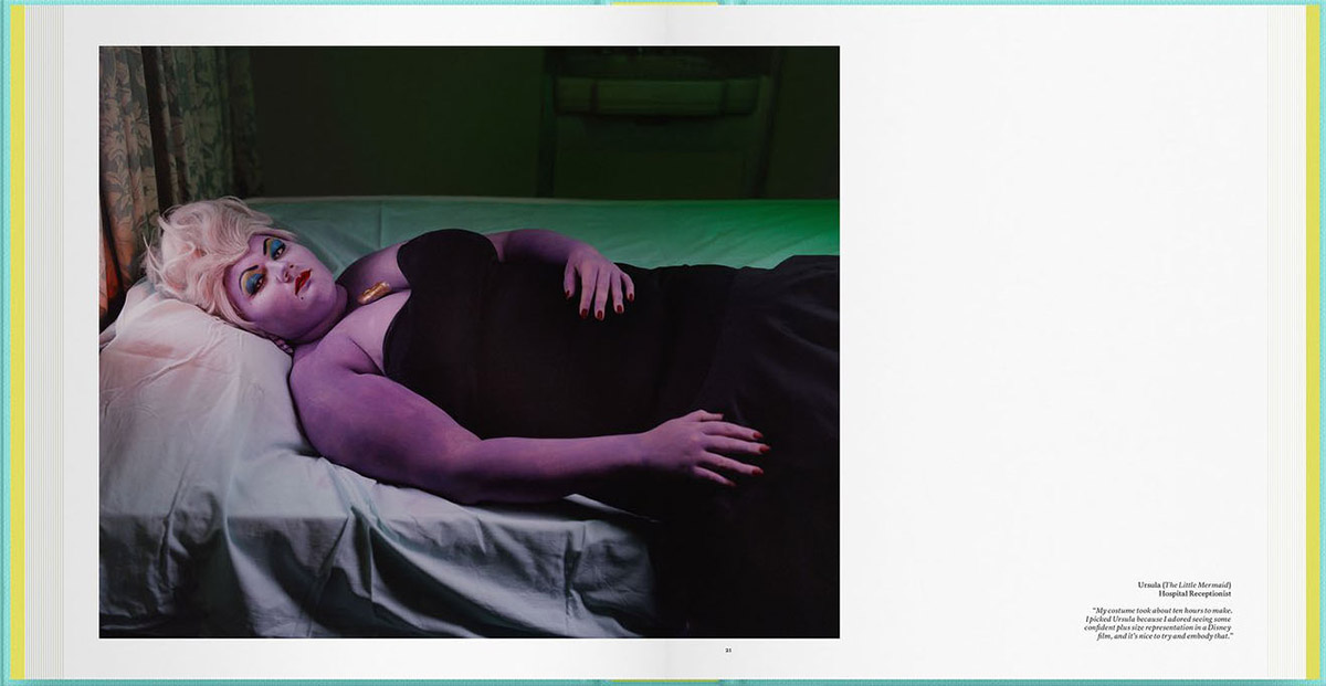 We see many characters we know: Batman, 3-CPO, Captain America, Spider-Man, Alice in Wonderland, Bo Peep, as well as characters from popular motion pictures such as Indiana Jones and Ursula from The Little Mermaid. Naturally, there are also many lesser-known figures which are only familiar to certain age or interest groups. That’s where the captions and explanations come in very handy. In all cases, we admire the meticulous work that has gone into costume and makeup design and execution, and we also get the idea that some of what the individual impersonators believe in is translated and visualized through the figures they portray.