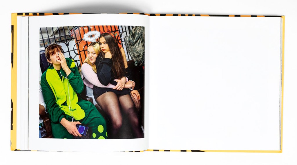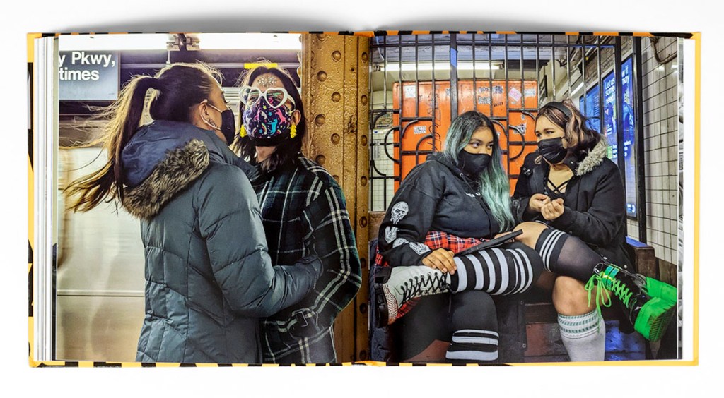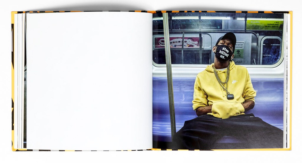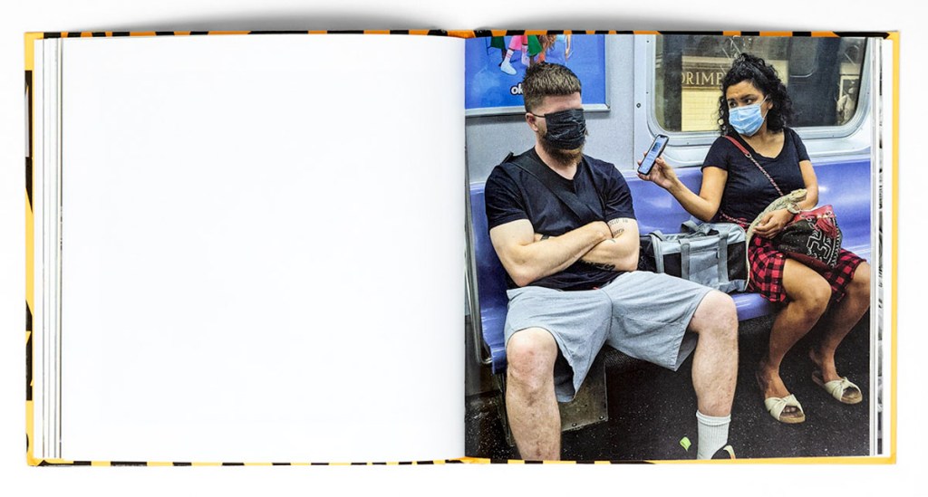 The first 42 images in the book are pre-pandemic, and 32 pandemic-era images are presented second. The two sections are separated by an orange-colored page. Masks become the main feature of the second section, showing how normalized mask wearing has become. With virtually everyone in a mask, the viewer’s attention is drawn to the eyes, and it is really nothing short of astonishing to see how much we can read from them.