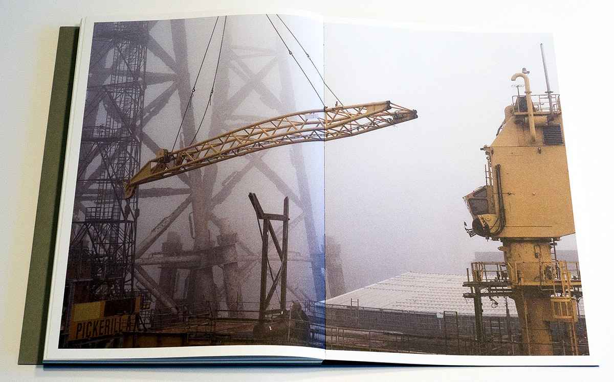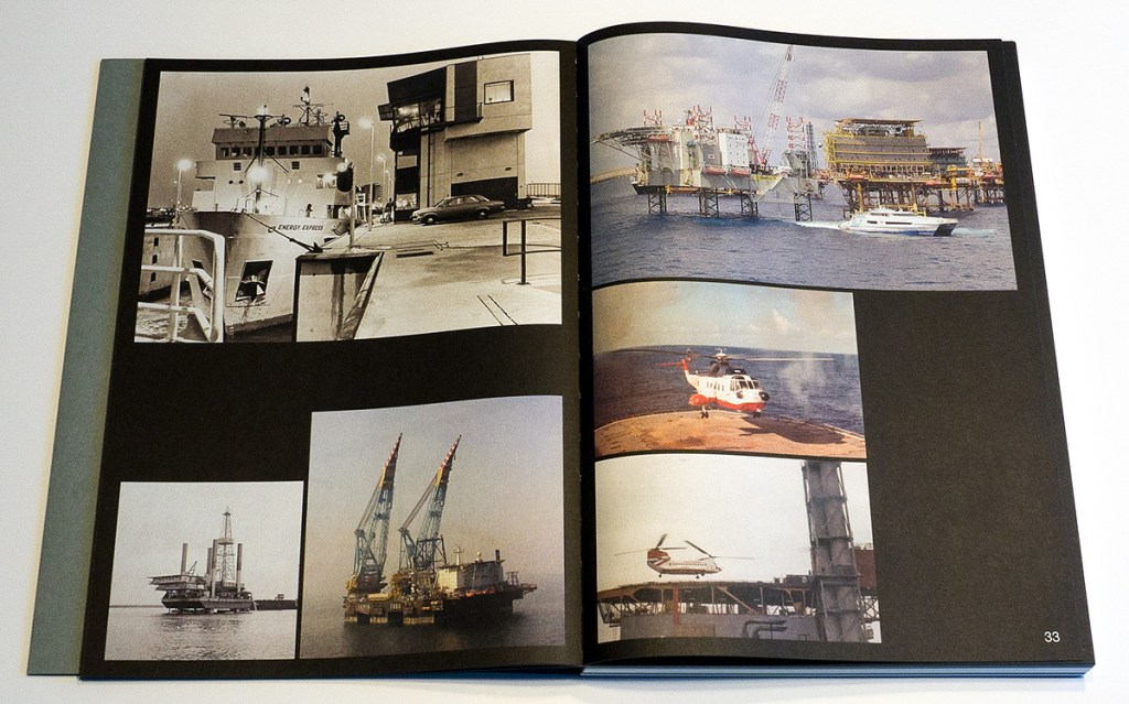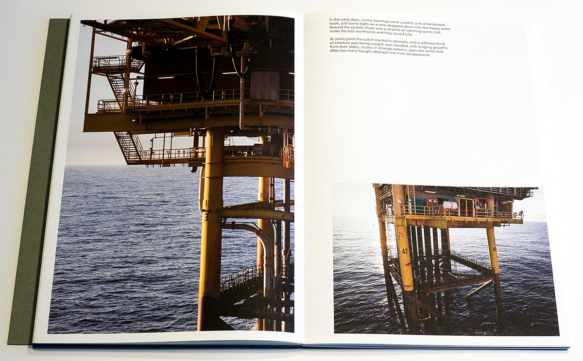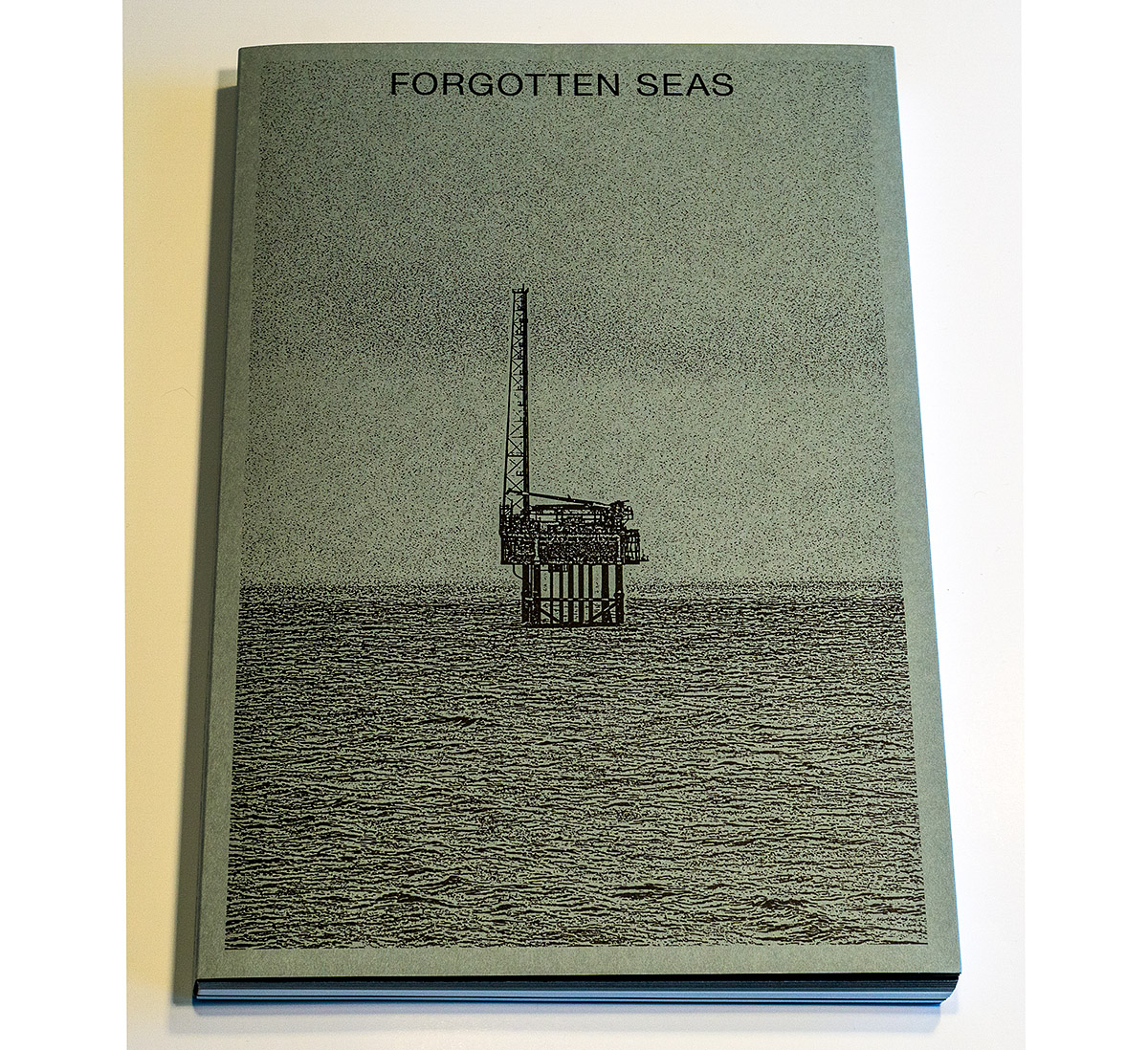 On my first pass through Forgotten Seas, I was drawn to the physical architecture so expertly captured. When viewing oil rigs of varying sizes, arrangements, and states of repair, I was struck by two feelings. The first — and perhaps from where the photobook draws its title — was a sense of foreignness. Regardless of my feelings about continued dependence on fossil fuels, there is something interesting, frustrating even, about the fact that these ugly and beautifully intricate marvels of engineering are so unfamiliar, forgotten. Much of the world I inhabit is powered by oil and natural gas siphoned from below the ocean floor, but I am never confronted by them, nor directly impacted by the environmental burdens they impose (climate change being the exception). I was secondly struck by a feeling of loneliness. I have no idea what it is like to live and work on an offshore oil rig. Yet, when I look at photographs of small, solitary metal structures dropped into the vast North Sea, how am I to imagine it as anything but isolating? What must it be like to spend weeks on end, knowing that you are a part of a network of rigs, but that this network is spread across untold distances, connected only by giant ocean liners, helicopters, and endless waters?