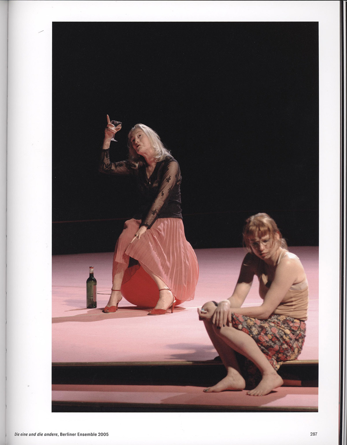 The photobook has seven major sections, raging from specific genres, such as classical Greek drama and Shakespeare, to specific directors with whom Waltz has worked (especially Botho Strauß), and three final chapters which give great insights into handling staged spaces and visual arts phenomena on the stage. A concluding special section serves as a tribute to her partner, the late actor Bruno Ganz.