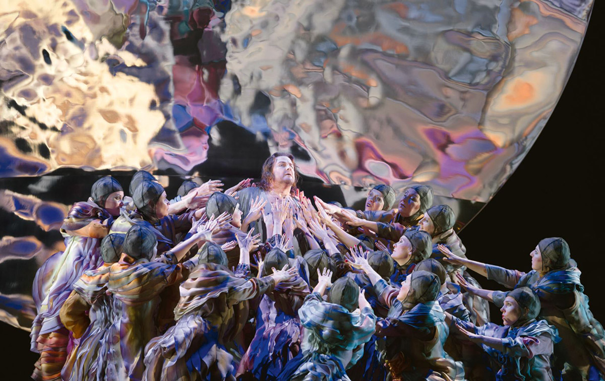 We quickly gain a deep appreciation of the range of Walz’s capabilities. As expected, she is able to produce fantastic portraits of the actors. But her special skill is to capture that moment in various people’s performances that encapsulated the emotion of the circumstances to be conveyed to the audience, as intended by the artistic team. It is that special ‘decisive moment,’ so often quoted in ways that don’t fully apply, that here perfectly describes the specific accomplishment of many of the photographs that Ruth Walz created. Her special strength might be presenting the grand design of moments in sweeping views.