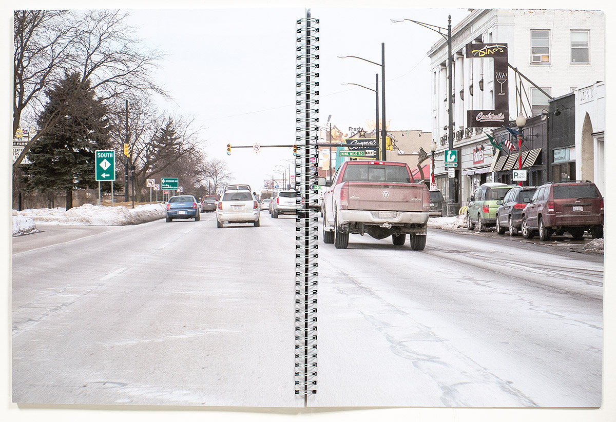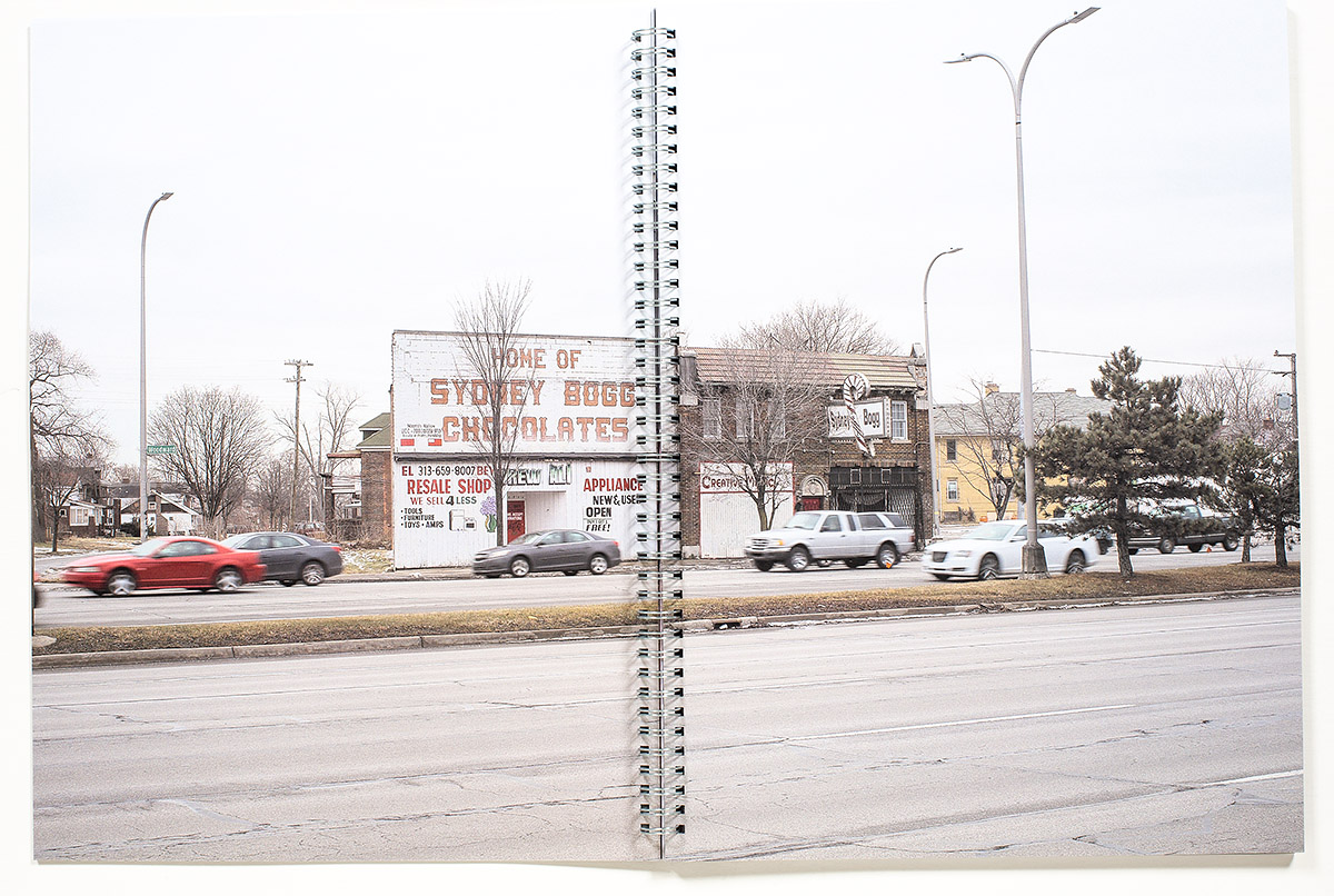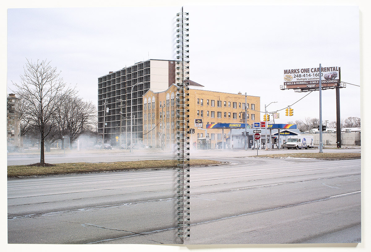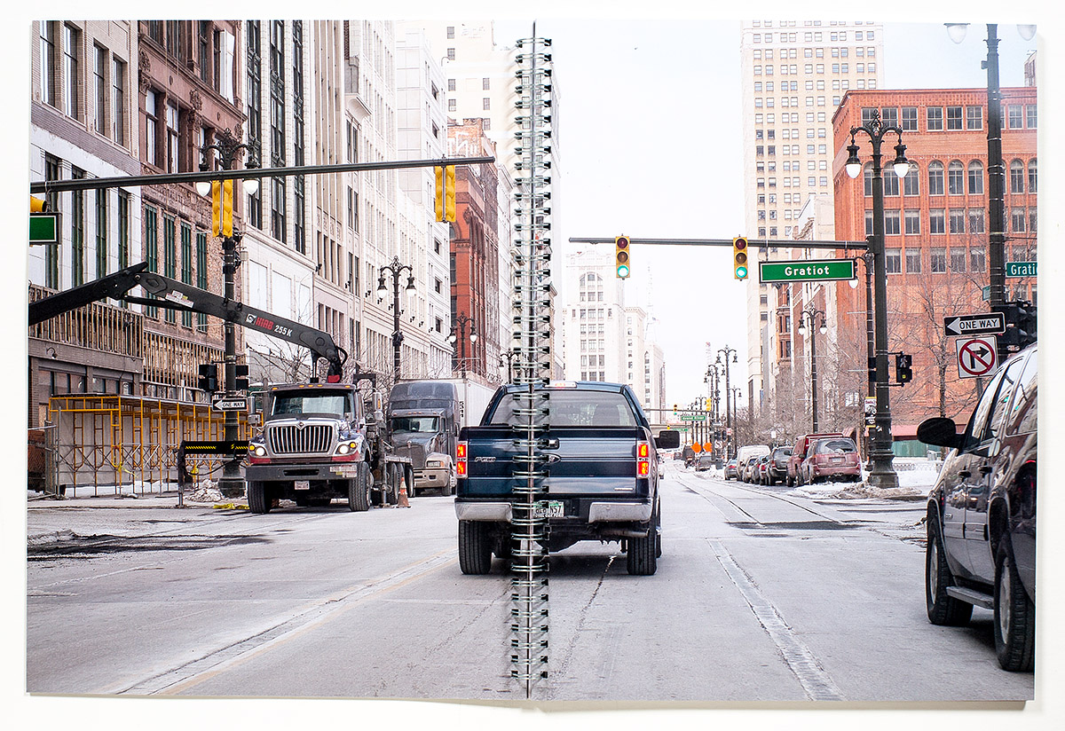 There is no supporting text for this volume to provide any context. On his website for this project, Kasners does provide the following “The pictures taken as a pedestrian cover some of the distance that later was traversed by car. Thus, contrasting two speeds of movement, pertaining to different kinds of mobility and differing levels of peoples’ access to the city.” There are two different perspectives provided, one on foot while the other from a car. Nevertheless, there is one aspect of Detroit that appears to be overlooked, as a car-centric urban center, it sees everyone has access to a car, abet in various conditions and states depending on their economic statis.