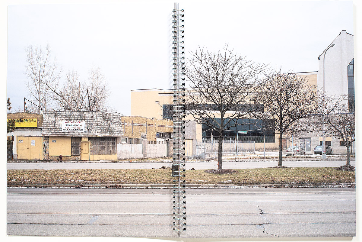 These are not ‘pretty’ urban landscape photographs, while revealing the grittiness of a large and older American urban environment. The book’s printing appears lower in contrast, perhaps due to the use of Digital Lithography with a matte paper, while I suspect that it helps set the overall mood for this dreary appearing urban landscape. This deadpan visual effect is further emphasized by the time of year, winter or perhaps very early spring, when this project was completed, which is resplendent with overcast skies and even what appears to be a clear blue sky, the resulting sunshine appears dull and muted.