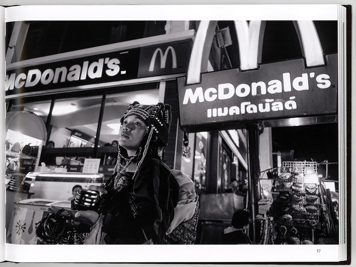 The mostly wide-angle images are printed very large and with strong contrasts. This puts us right in the midst of the action. As shown in the description of some of the pairings and in the double page images below as well, interesting contrasts are developed for the viewer and reader. There are occasional small verbal exposés that describe settings and moments of interest. Urbanization and globalization are processes that cause much individuality to disappear and make much personal and local initiative more difficult to bring to fruition.