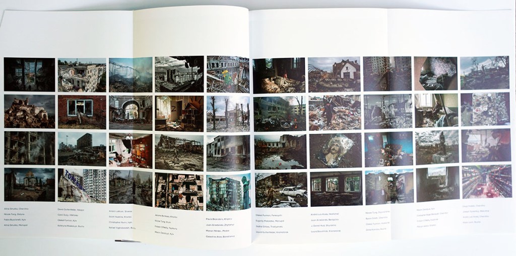 How challenging it must be as photojournalists to work in these conditions, and document atrocities, in extreme temperatures, hearing the wails of grieving family members, smelling fresh blood and breathing concrete and dust-clogged air, all the while under constant threat of being bombed or shot themselves while bearing witness to another chapter of man’s inhumanity to their fellow man. While Ukraine: A War Crime provides a very sober reflection on what sorrow looks like, it also shows the heroism of medical personnel working valiantly with limited equipment in effort to save at least one more precious life. People throughout the world need to see yet again the scale of destruction of cities and neighborhoods, what it is to stumble upon mud-caked hands protruding from mass graves, the lifelessness of a bombing crater next to a hospital maternity ward…