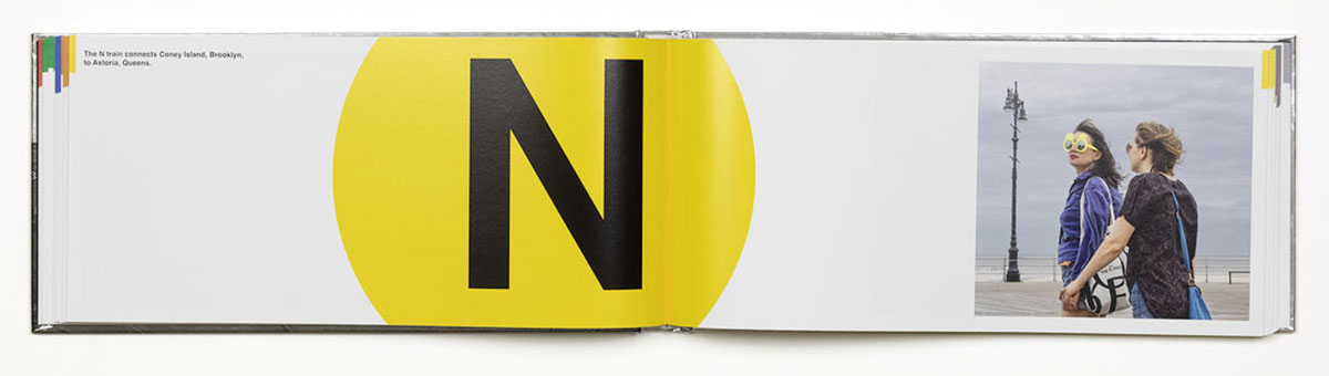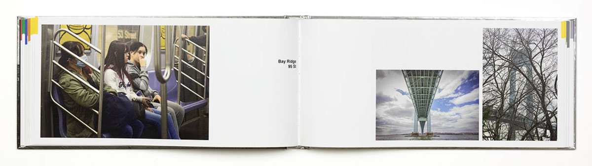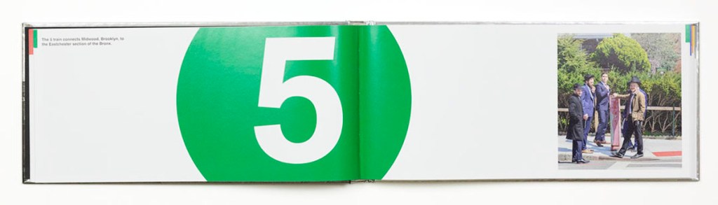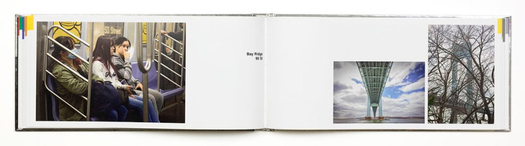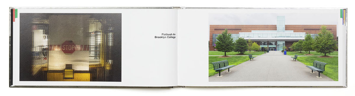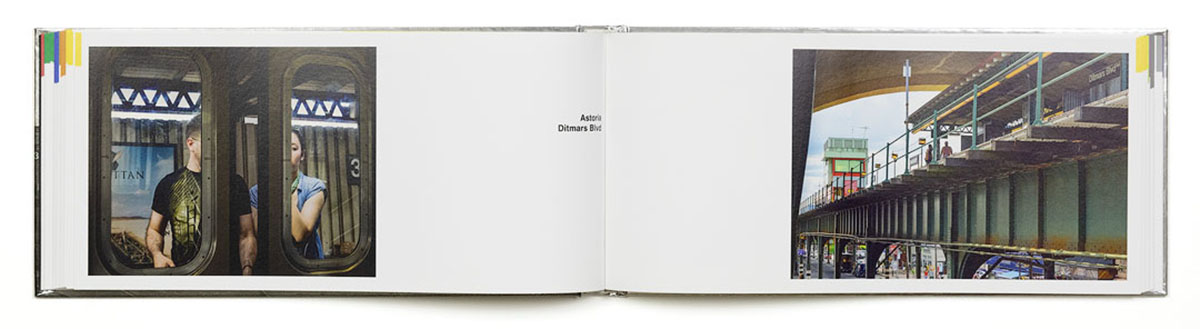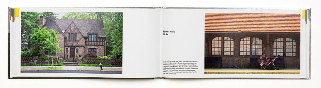 This book is organized by rail line, which is of great help to readers not familiar with this system. There are three consecutive two-page spreads dedicated to each rail line: the opening two-page spread provides the name of the line and an introductory image, the next two pages provide images from the ‘first stop’ on the line, and the last two provide images from the ‘last stop.’ A folded map of the entire subway system is provided as an insert. Occasional field notes accompany the images.