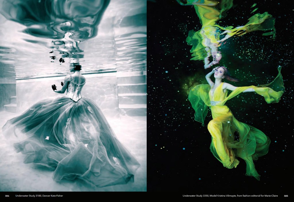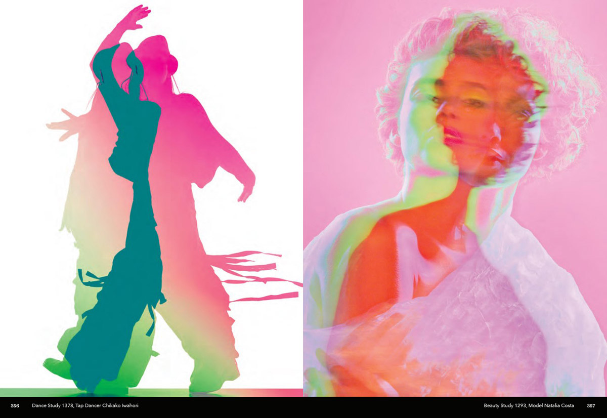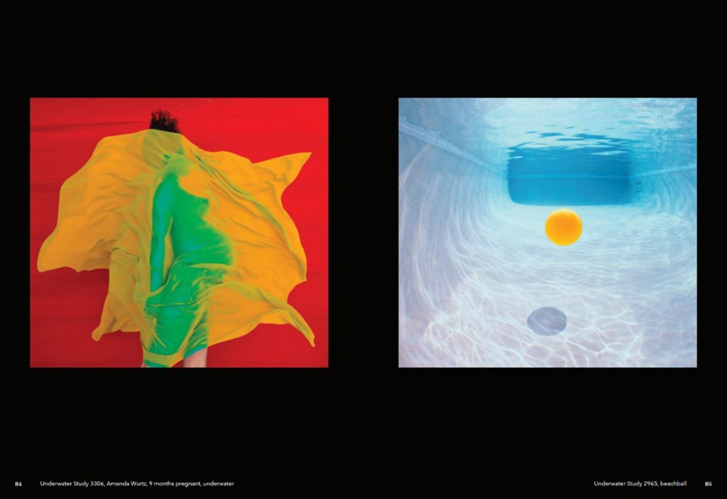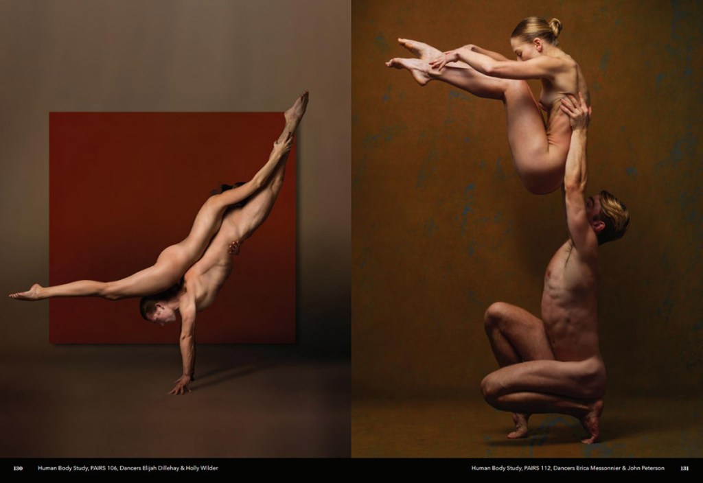 Pairs is very strong in the variety of images presented. Not only do we have studies of human bodies that are interestingly combined in double pages, as you can see below, but we also find them integrated with sports activities, entertainment, and various other pursuits. Thus, for instance, we have underwater shots with a lyrical slant, we have dance performance images which not only highlight interesting combinations of pairs of humans but also feature movement and color impressions. We see objects from the environment, such as plants and fruits, interestingly combined. The water surface, seen from below, is utilized as an excellent mirror that reflects what transpires in the water below. Some of it takes us into abstract realms. Check out the few sample double-page spreads shown here as to what you can expect. As you can see, each image is accompanied by precise annotations.
