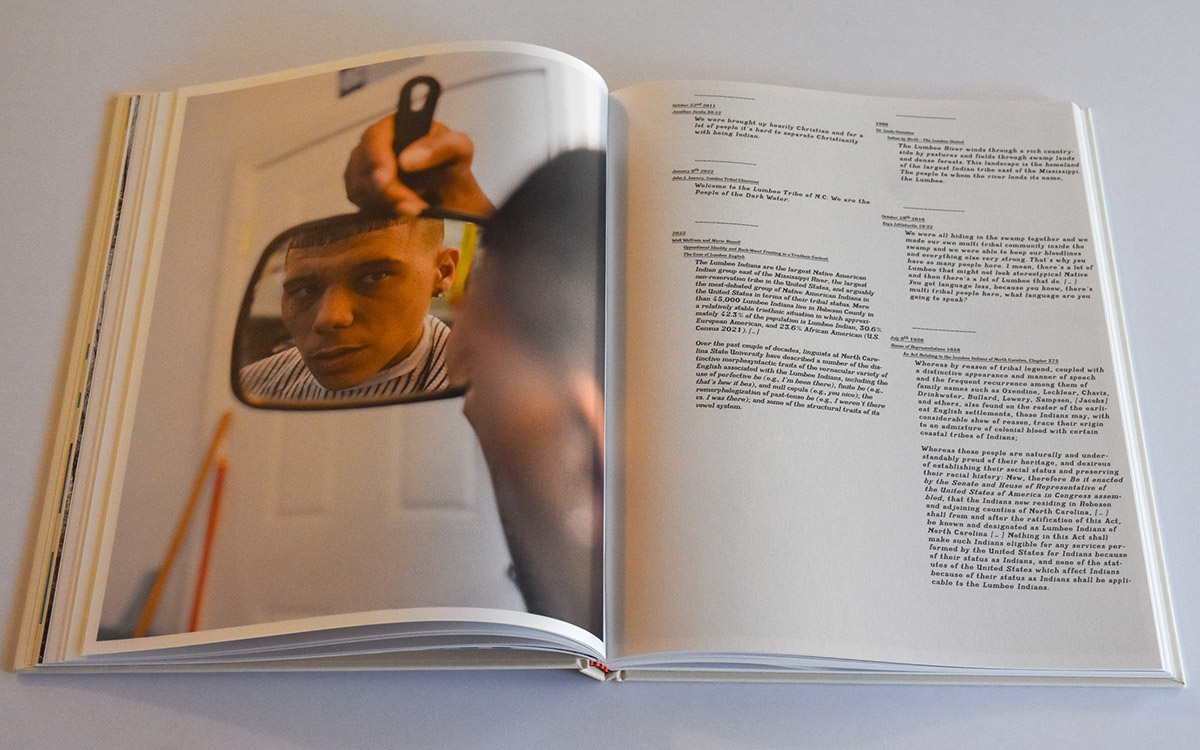 On the other hand, this photobook, assembled by a Romanian photographer from Germany, exists against a historical backdrop in which Indigenous peoples have not been allowed, by and large, to represent themselves. On some level, it is clear that Sturm recognizes this, and chooses to include excepts that call for greater Lumbee sovereignty and a need for Lumbee unity. Yet, this photobook (hopefully) encourages readers to question how and why outsiders, Sturm included, are “needed” to orchestrate such a project, especially given the fact that there is no shortage of Lumbee people and other locals working to document Lumbee history and culture. Many Lumbee elders, including Dr. Lynn Jacobs who is quoted in this photobook, continue to act as storytellers and knowledge keepers, passing down Lumbee tradition and history to future generations. Additionally, scholars, such as Dr. Ryan Emanuel, Dr. Malinda Maynor Lowery, and Dr. David Wilkins, have and continue to write about the Lumbee people in both historical and contemporary contexts. Still more, UNC-Pembroke, which was originally founded as the Croatan Normal School to train Native teachers, continues to take seriously its relationship to the Lumbee Tribe, maintaining, for example, a Lumbee History and Culture Collection in their Special Collections and Archives and the Museum of the Southeast American Indian.