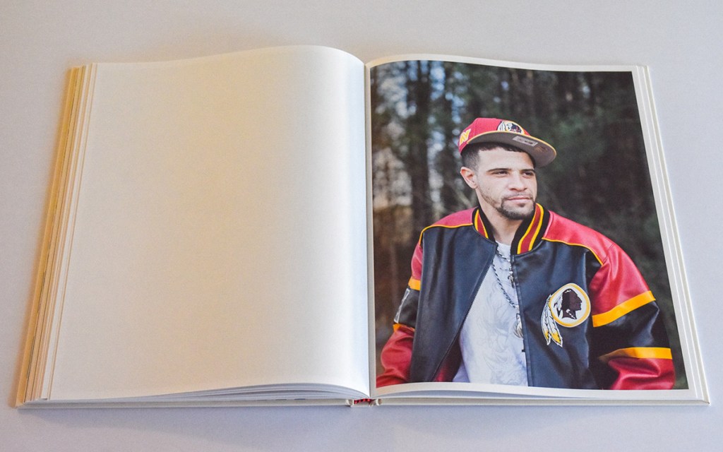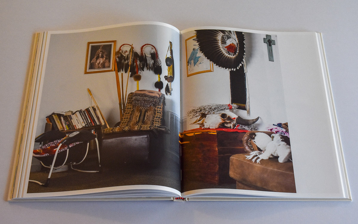 On one hand, Sturm does well to capture photos that speak to Lumbee culture and sense of place. There are several photos of the Lumbee River, portraits of young families and groups of friends, and depictions of other important local symbols, such as the University of North Carolina at Pembroke’s “Braves” logo, elderly hands opening to show a fistful of pecans, red-tailed hawk feathers pinned to a baseball cap, and pow wow regalia. Sturm’s photos also highlight the ways in which Lumbee identity and culture continues to be shaped by forces external to Robeson County. Sturm, for example, photographs multiple interior living spaces that have on display feather headdresses, dreamcatchers, and books with titles like, Native American Clothing, The World of the American Indian, and A Song for Mother Earth, suggesting a generalized or panethnic Native identity. Interestingly, this same desire to represent the Lumbee’s relationship to a wider social world also results in photographs that present contradiction, such as an image of a Lumbee man dressed in a jacket and hat emblazoned with Washington Football Team’s racist former logo. This desire to portray the Lumbee in ways that challenge white cultural imagination and stereotypes about Indigenous peoples is commendable, and for this reason, it is not hard to see why Sturm’s work has been featured in outlets like CNN and exhibited in New York, Rhode Island, and the Netherlands.