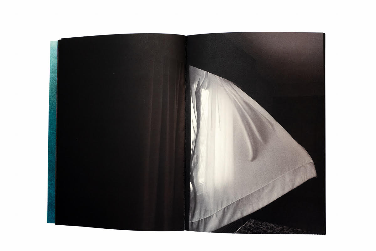 Its unique slipcase hints at the book’s story, a glimpse of the author’s relationship with his father and his father’s journey with mental illness. The compelling images are a skilled progression of family snapshot photography and the author’s abstract images brought to life with powerful text and exquisite sequencing. The volume is extraordinary, its unique slipcase pulls open from both sides to unveil a sewn binding of 128 pages of 200+ gsm paper. Each page turn is a very physical act, the reader visually and tactilely experiences the weight and significance of the page turn and the discovery of the content after the turn.