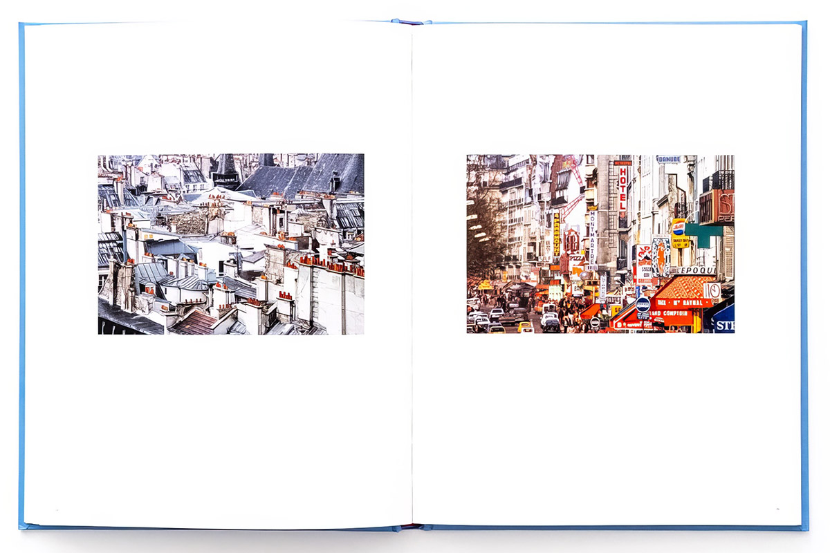 Paris was published by Contrejour in 2023, a Paris (originally in Montparnasse) based photography book publisher. The book contains 88 pages and goes for 35 euros and is worth the money as it is a nicely printed offset edition. The title of the book is embossed on blue board making up the covers. The design of the book overall might be described as understated, once again separating itself from the enormous amount of linen wrapped fine art photography books. Only Artazart wraps it in cellophane on demand.