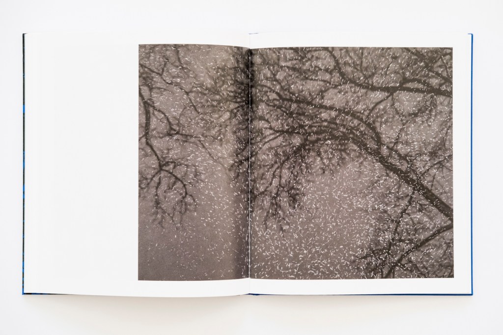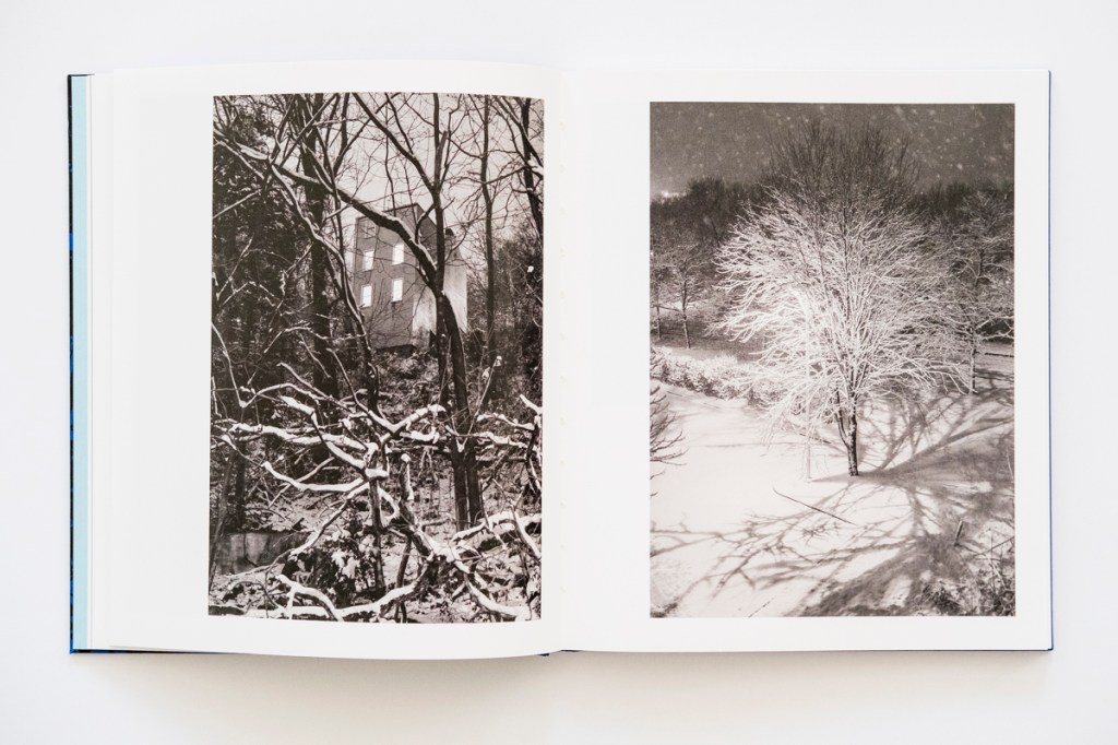 There are some Adams references even to be found that do not exactly correspond to Summer Nights, Walking, which illustrate some of Panar’s innovations. For example, towards the end of the book, Panar includes an image of a dog’s distinctive profile, in shadow, as he peers through a window late one night, presumably detecting the pedestrian. The image seemingly refers to one of Adams most famous images, originally included in The New West, “Colorado Springs, 1974.” However, even here, it’s the subtlety of Panar’s work that differentiates it and makes it stand apart. In this same image, we pick up the theme of movement that is running through this book – movement in terms of the walking, but also in how the pedestrian might navigate the environment itself – as we see the rain pelting the pavement, illuminated by a streetlamp. Similar techniques and themes appear throughout the text with Panar’s striking use of flash at night (a feature across all Panar’s books is the emphasis on ensuring an appropriate exposure, and night images will often appear with flash as a result). The flash is used to illuminate the falling snow at various points in the book, adding an additional foreground layer to the image. In another image (perhaps only with streetlight illumination), by dragging the shutter Panar picks up the wavelike movement of the snow being pushed around by the wind, thus further emphasizing the photographer dealing with the elements. Each technique is impactful as the reader gets the sense of the joy, but also struggle to make these pictures.