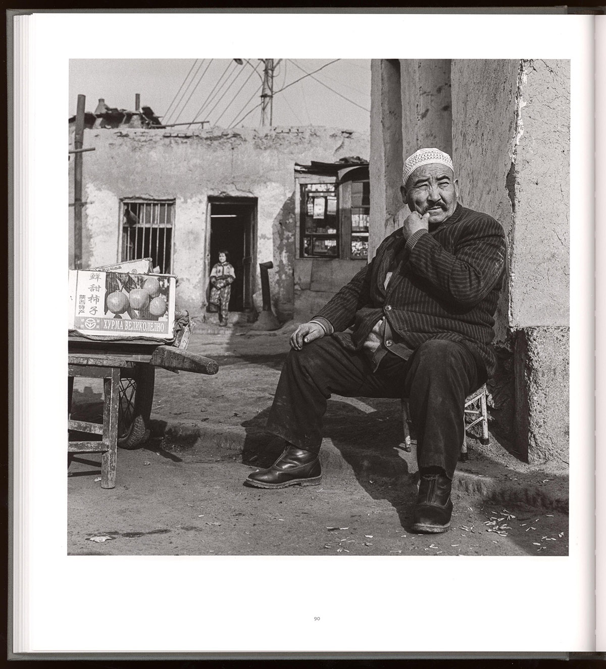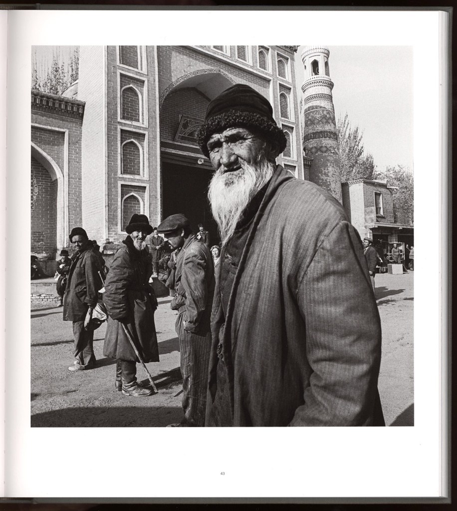 Looking at the photographs, we see many moments of the people and places of the city of Kashgar, a beloved location of the Uyghurs. We see them against a backdrop of many centuries of history, as evidenced by the buildings and streets. People are engaged in their daily routines; education seems available on an equitable basis, and they seem eager to learn. It is also interesting to see several ethnicities side by side. Modernity also peeks around the corner. Bubriski has a special skill in structuring images interestingly from front to back; this adds to the viewers’ discovery journey and viewing enjoyment. Excellent examples are the image of the children in the alley and the image of the assembled elders.