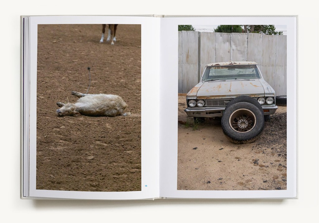 This photobook is very pleasant as a physical object. The layout is varied, the color images are printed beautifully and are juxtaposed in an imaginative fashion. There is no doubt that both the cars and the cattle have a certain beauty: the newer or younger they are, the more appealing they seem to be. The editing and layout keep us interested from beginning to end, the essay by the author and the quotes at the beginning of the book make us think about the larger purpose and context.