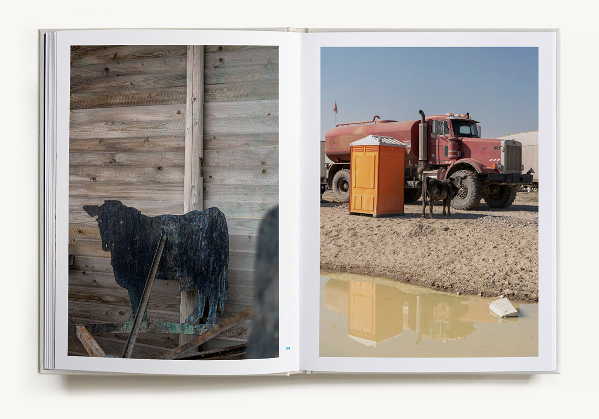 This photobook is very pleasant as a physical object. The layout is varied, the color images are printed beautifully and are juxtaposed in an imaginative fashion. There is no doubt that both the cars and the cattle have a certain beauty: the newer or younger they are, the more appealing they seem to be. The editing and layout keep us interested from beginning to end, the essay by the author and the quotes at the beginning of the book make us think about the larger purpose and context.