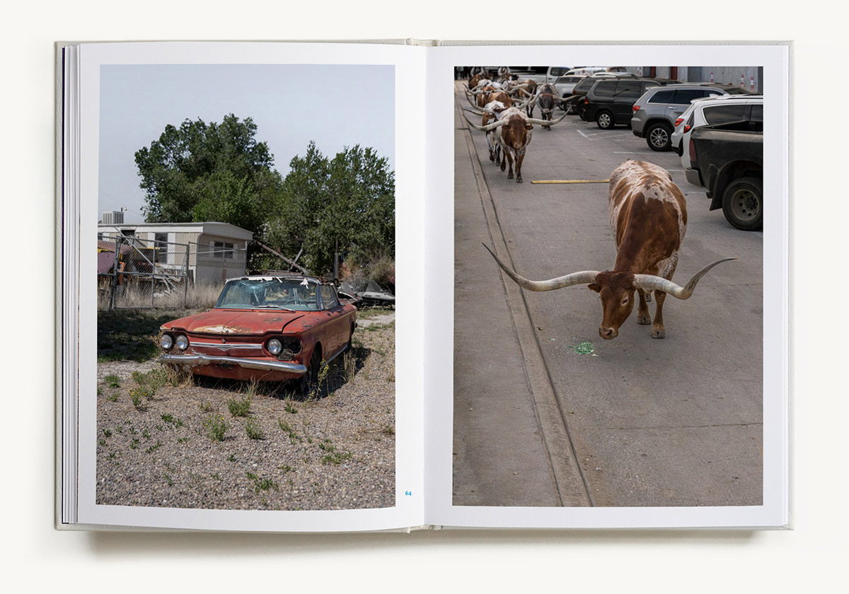 This fascinating photobook combines images of two seemingly unrelated subjects, old cars and cattle. In recent travels across the United States, Ute Behrend was struck by the ubiquitous presence of these two elements throughout the landscape. As we involve ourselves in the contents and juxtapositions found in this project, we detect a deeper significance on several levels. These are not just vast standard American landscapes with some appealing elements in them, but also have a deeper meaning, giving us close-up views about American culture, past and present.