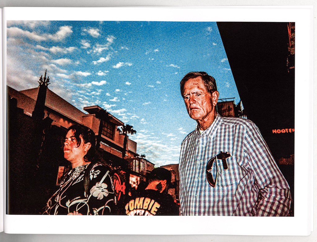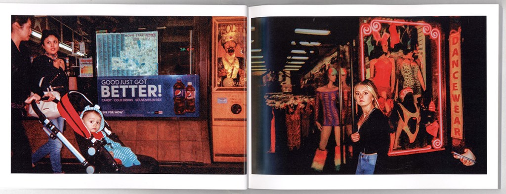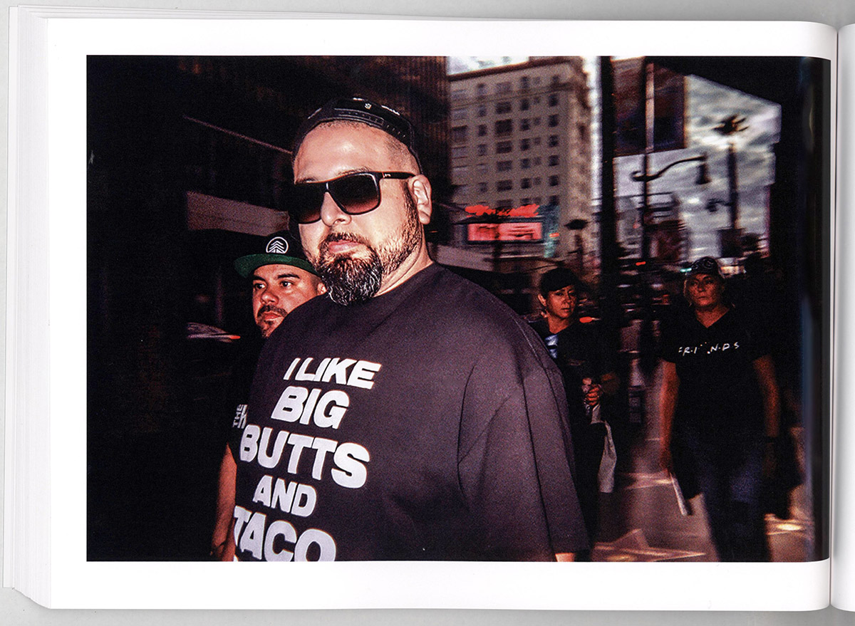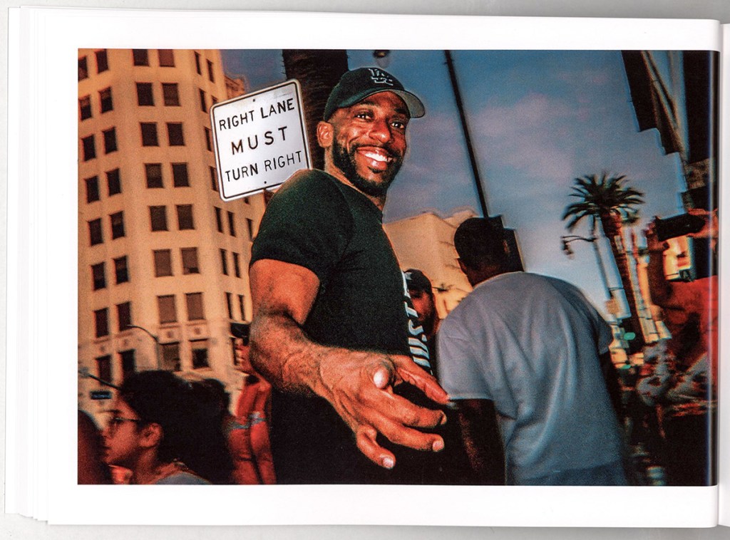 The result is an unprecedented compendium of street stories, visual and verbal, with a very distinct Hollywood Boulevard background. The photographs convey an extraordinary feeling of immediacy and directness. We see acceptance and rejection and everything in between in people’s various expressions, sometimes even several attitudes within the same photograph. The cultural preoccupations of tourists serve as the general setting, along with the parallel world of those who hang around the streets trying to make a few bucks from tourists and other bypassers.