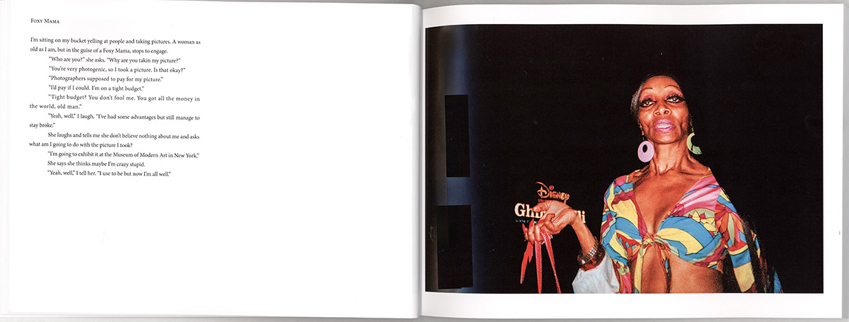 As you can see in the images I have selected, there is an interesting contrasting of age groups, people of different backgrounds and cultural areas, from the perspective of someone who is an observant bystander sitting on a bucket. As expected, most of them are taken from a low angle, resulting in a very specific type of environmental portrait. The personal anecdotes are interspersed and the layout of the images and stories is varied and makes viewing and reading a pleasure.
