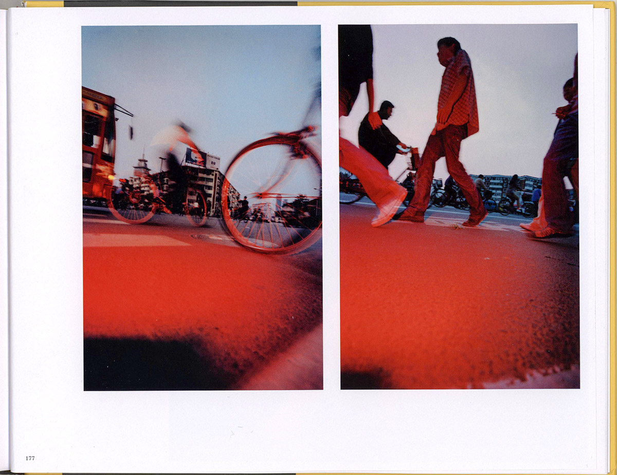 Philip Tinari in his preface calls Mo Yi’s photography “a vision of a finite external world as experienced by an artist on a visceral level and at a daily rhythm.” The editor, Holly Roussell, recounts valuable biographical data and exhibition histories, and calls her astute analysis “Symphonies of Dissonance.” Christoph Wiesner, in emphasizing the appearance of the photographer as part of his street images, also discusses the idea of intentional loss of control while shooting photographs on the street, which seems to be of major importance to this photographer.
