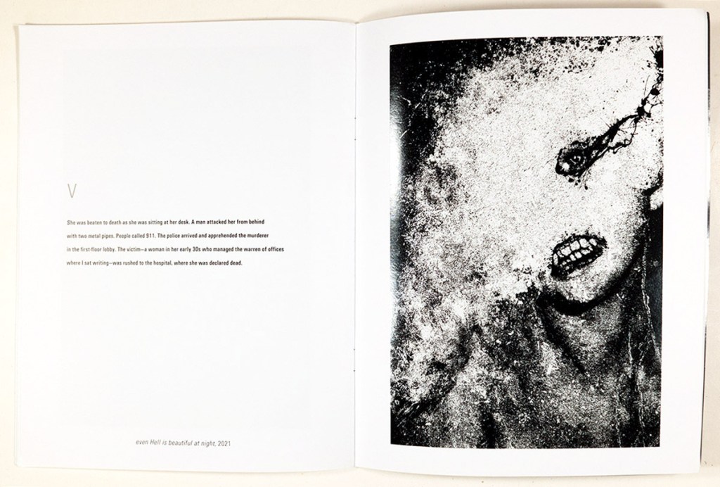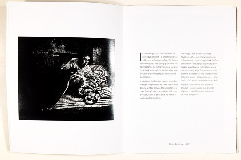 Physically, the book (published in partnership with The Photo Review [2023]) presents magazine-like, softcover with a saddle stitch binding, 8 ½ x 11 inches. Its 32 pages contain 16 plates as well as the text by Nancy Brokaw. The book’s fragility, in a sense, echoes the fragility of the fragments and bodies circling Saturn.