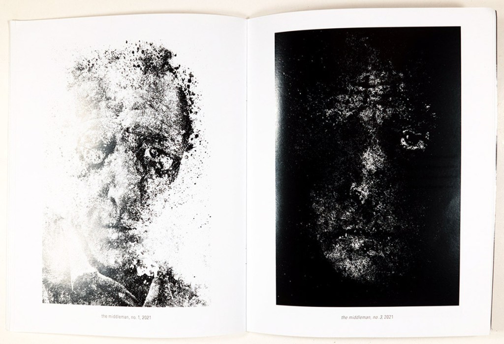 What I’m trying to get at here, is the complexity of how this short book weaves together three separate voices – the images, the biographical fragments and Brokaw’s commentary – which not only intertwine and modify each other, but also revolve, moon-like, around an unknown center. What do these images offer (other than their striking visual beauty) of the subjects photographed? In one respect, precious little, I would suggest, except the silence that imbues any photograph. While Brokaw tells us these images are digitally crafted, they strongly suggest the materiality of film-based photographs enlarged to the point of granular unrecognizability.