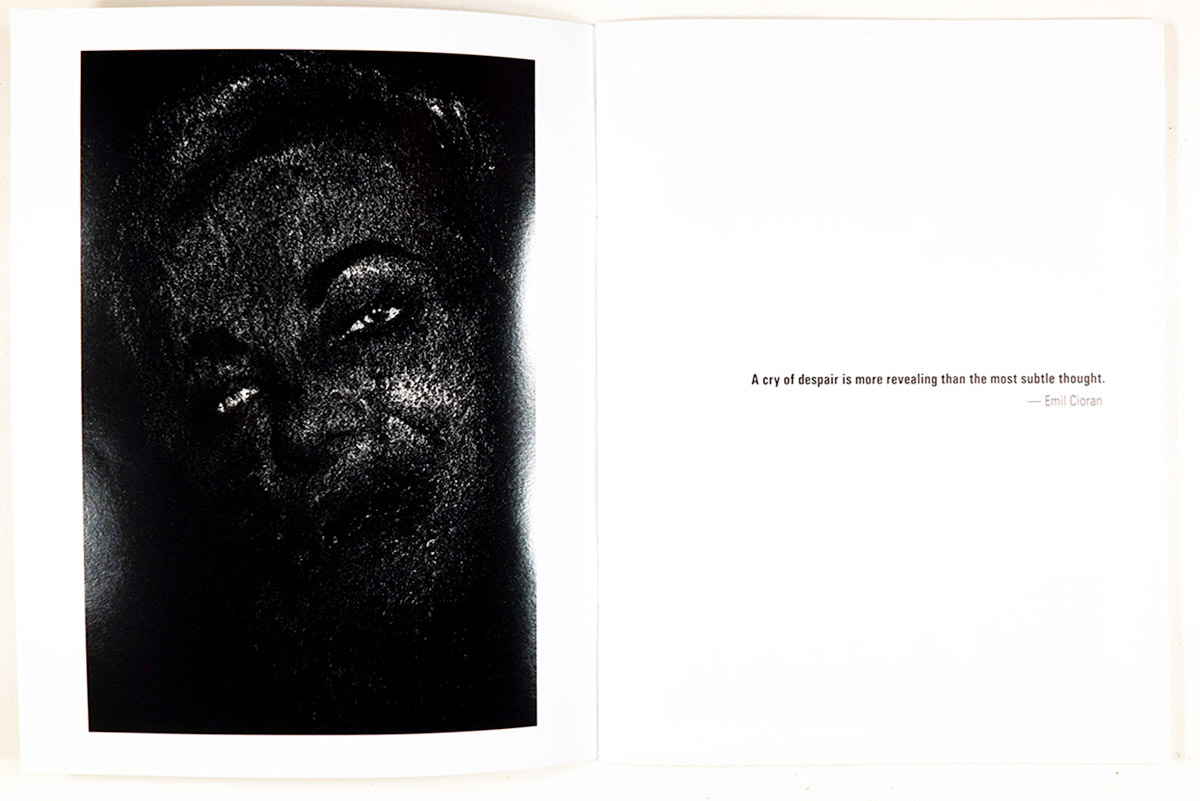 What I’m trying to get at here, is the complexity of how this short book weaves together three separate voices – the images, the biographical fragments and Brokaw’s commentary – which not only intertwine and modify each other, but also revolve, moon-like, around an unknown center. What do these images offer (other than their striking visual beauty) of the subjects photographed? In one respect, precious little, I would suggest, except the silence that imbues any photograph. While Brokaw tells us these images are digitally crafted, they strongly suggest the materiality of film-based photographs enlarged to the point of granular unrecognizability.