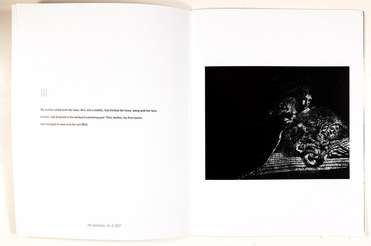 Physically, the book (published in partnership with The Photo Review [2023]) presents magazine-like, softcover with a saddle stitch binding, 8 ½ x 11 inches. Its 32 pages contain 16 plates as well as the text by Nancy Brokaw. The book’s fragility, in a sense, echoes the fragility of the fragments and bodies circling Saturn.