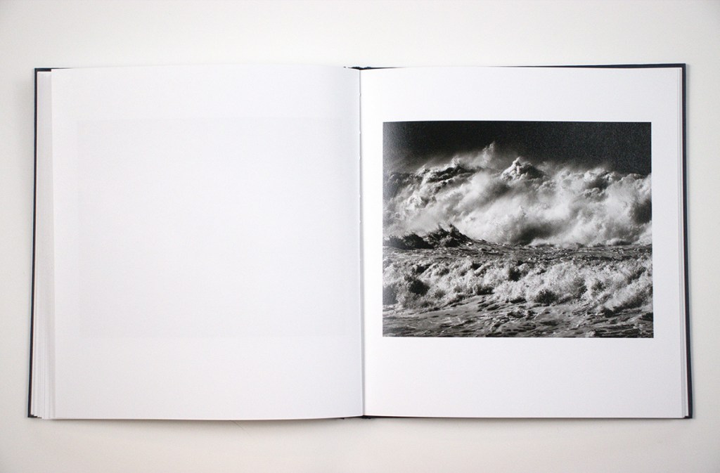 Aqua makes a good case for why the photobook is its own thing, distinct from, but built of, individual photographs, in the same way that a story or essay is more than the sum of its sentences. The photos are landscape format, except the concluding one, and they are sequenced one to a page. After we absorb their visual sound and fury, two blank pages separate the body from a final image of a slight swell, smooth and calm, but suggesting the menacing threat lurking beneath the surface.