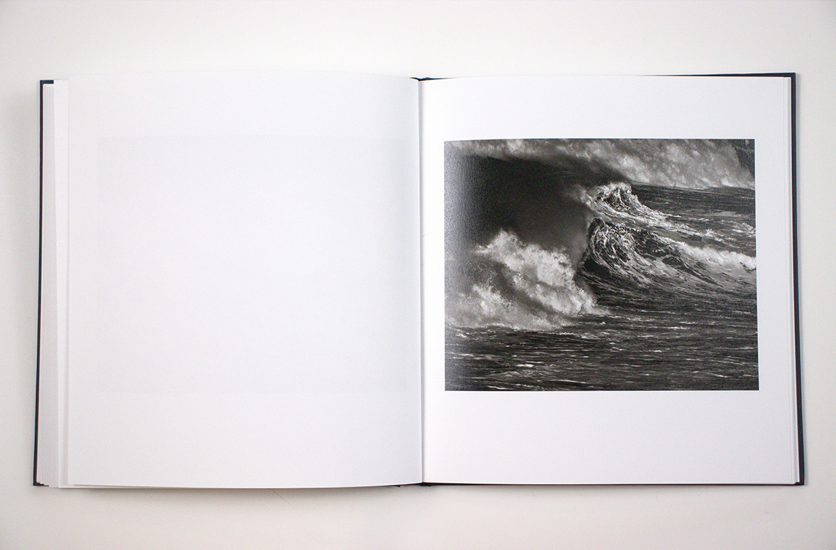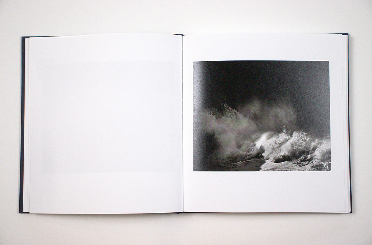 The photographs are black and white, apparently made with a longer focal-length lens that slightly flattens the images. They offer a varied inventory of wave forms, many of them breaking, some details and some wider views. The light is saturated with deep shadows. Rich, bold blacks and shining highlights are favored and mild, nuanced midtones are mostly absent. If it were music, Aqua would be played fortissimo rather than piano.