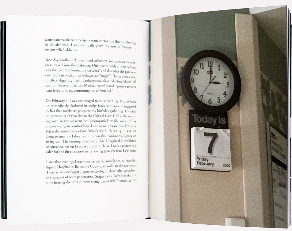 The memoir is also a harrowing account of Durant’s battle with necrotizing pancreatitis. He writes unflinchingly about the physical and emotional toll of his illness—the disorientation of hospitalization, the surreal effects of medication, and the struggle to reclaim a sense of self. These passages are raw and affecting, offering an intimate glimpse into his vulnerability. At the heart of this struggle is the steadfast presence of his wife, Bea, whose care and compassion ground the narrative in profound love. The book also explores the complexities of family, particularly Durant’s relationships with his aging mother and his son, Aiden.