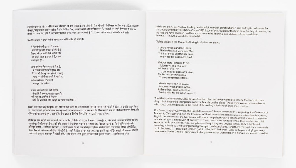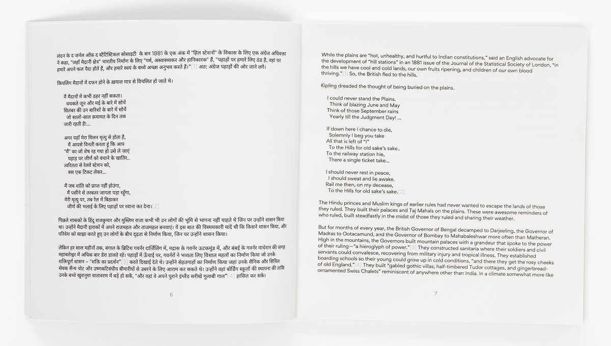 This book opens with a 4-page essay that emphasizes the challenge of a railway journey up into the mountains on a means of conveyance optimized for more horizontal travel. It reflects on the colonial past of India, and discusses how this railway would have served the British elite.