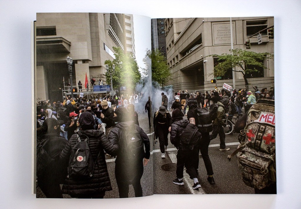 I can say this because I live in Portland myself. Although our house is close to the protest epicenter, the federal courthouse downtown, at home in COVID lockdown we lived in a different world. We saw no visible evidence of anything unusual happening, with the exception perhaps of more graffiti and BLM signs than usual. My children, then thirteen and ten, wrapped up as they were in their young lives, would be astonished to see these photographs of what was happening a few miles to the south.