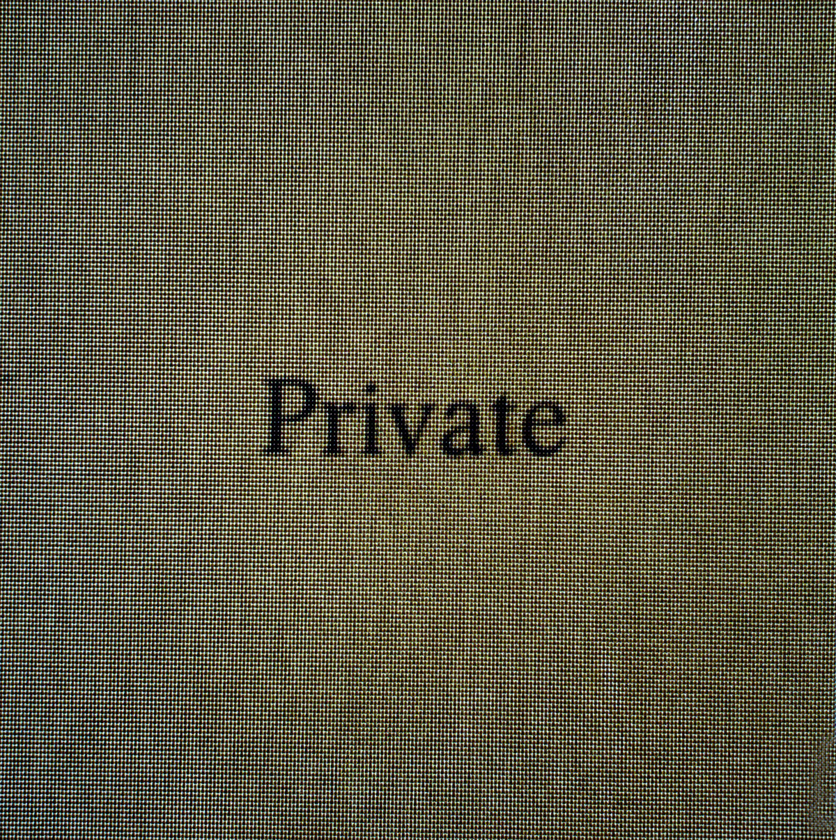 On a less literal level, Private serves perhaps as a metaphor for the inaccessibility of other people’s thoughts and lives, their unknowable mental spaces and realities, limited as we are in time and space as we move through our own eternal present.