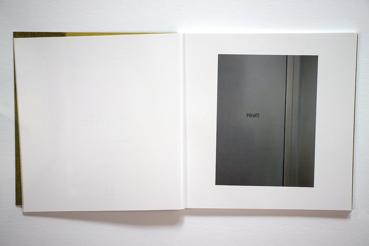 Depending on your tolerance for ambiguity and dry, tongue-in-cheek humor, Private can leave you feeling in on the joke or not. The joke is extended by the cover, which adds another layer of complexity. It is labeled “private” but unlike the doors in the photographs it is openable. Inside, though, all you see are more doors labeled “private…” A humorous text by Ed Park that narrates a visit to the back rooms of an art gallery complements the photographs.