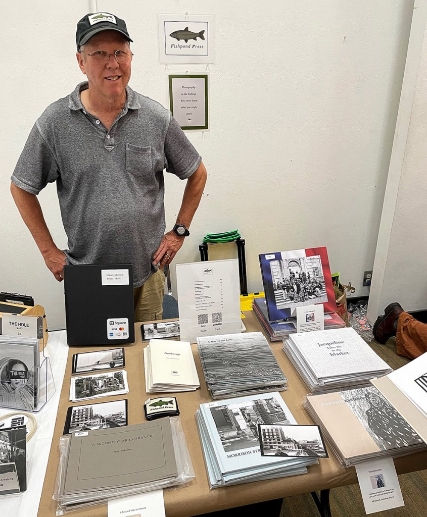 In terms of his background in photography, he was involved with Blue Sky photography Gallery in Portland in the early 1980s and in 1984 and 1985 served as an interpreter at the R.I.P. in Arles, France, where he assisted photographers Bruce Davidson, Mary Ellen Mark, Christopher James, and Lewis Baltz. He self-published his first photobook, A Second Year in France, in 1982 and has published seven more since then. He was a long-time member of Gallery 114, an artists’ co-op in Portland, where he had numerous shows until the realities of parenting temporarily sidelined his artistic pursuits.